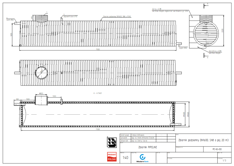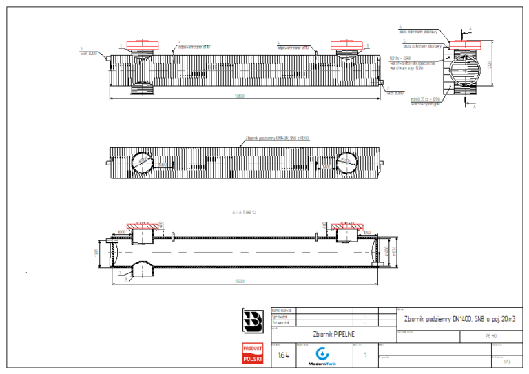 Zbiornik retencyjny DN1400 SN8 poj. 20m3