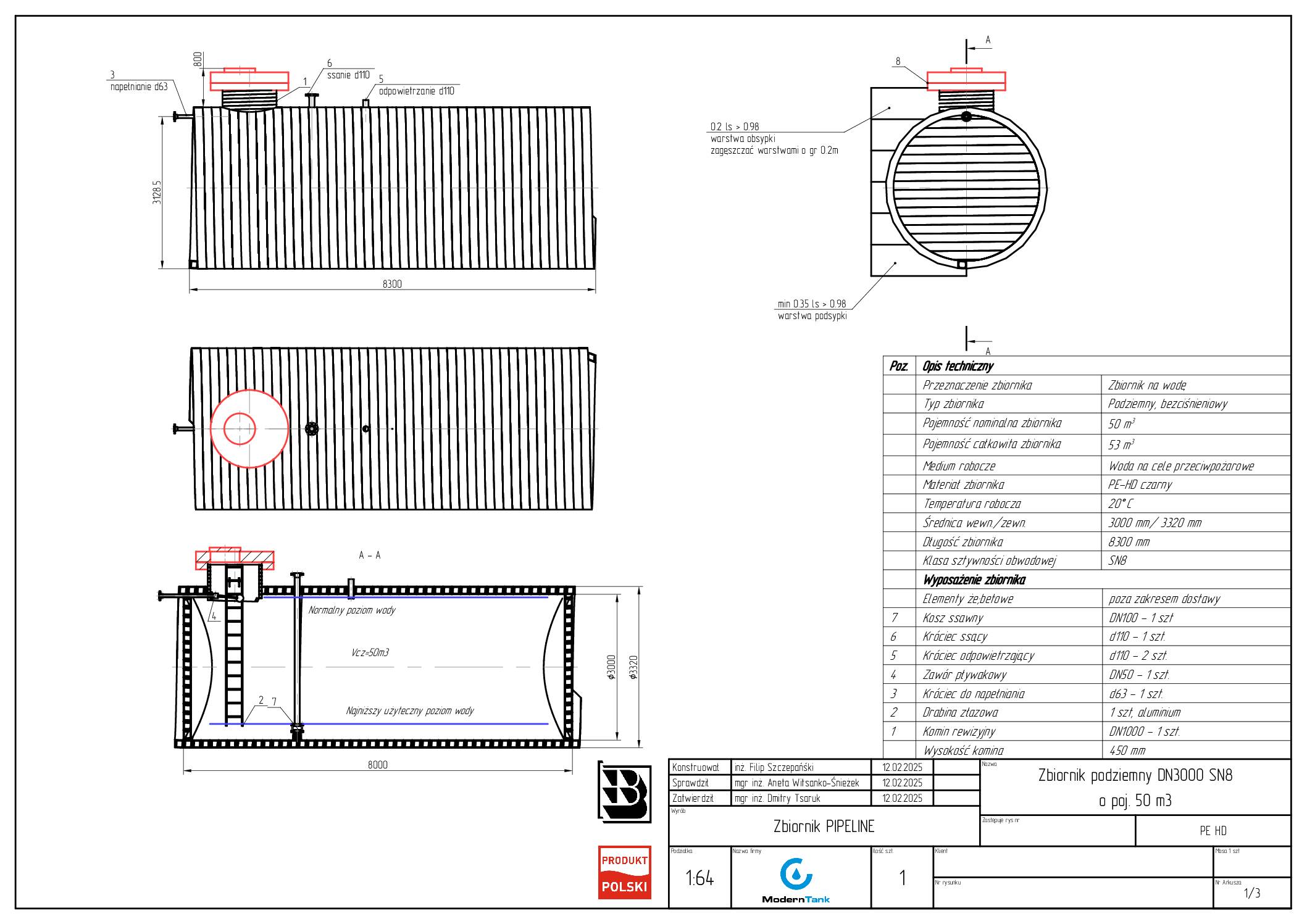 Zbiornik PPOŻ DN3000 SN8 poj. 50m3