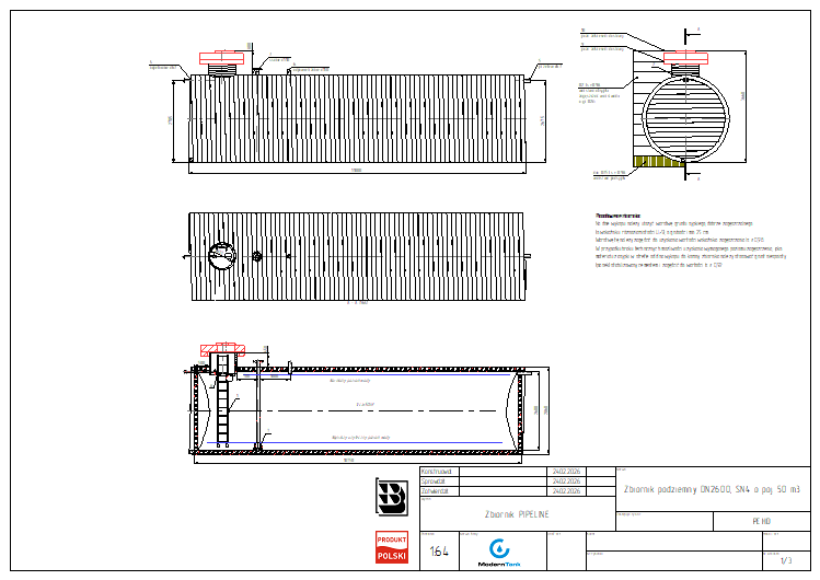 Zbiornik retencyjny na ścieki technologiczne DN2600 SN8 poj. 50m3