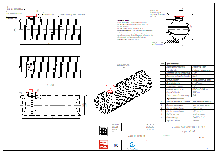 Zbiornik PPOŻ DN3000 SN8 poj. 100m3