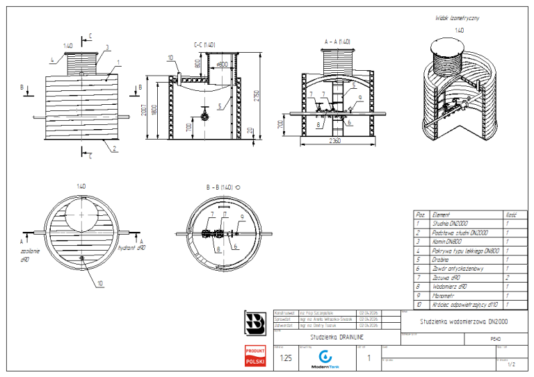 Zbiornik retencyjny na wodę pitną DN2000 SN8 o poj. 25m3