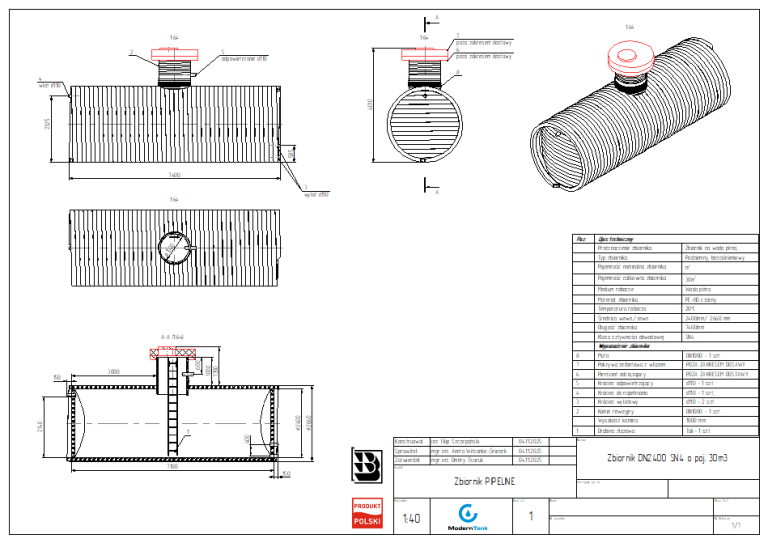 Zbiornik PPOŻ DN3000 SN8 poj. 200m3
